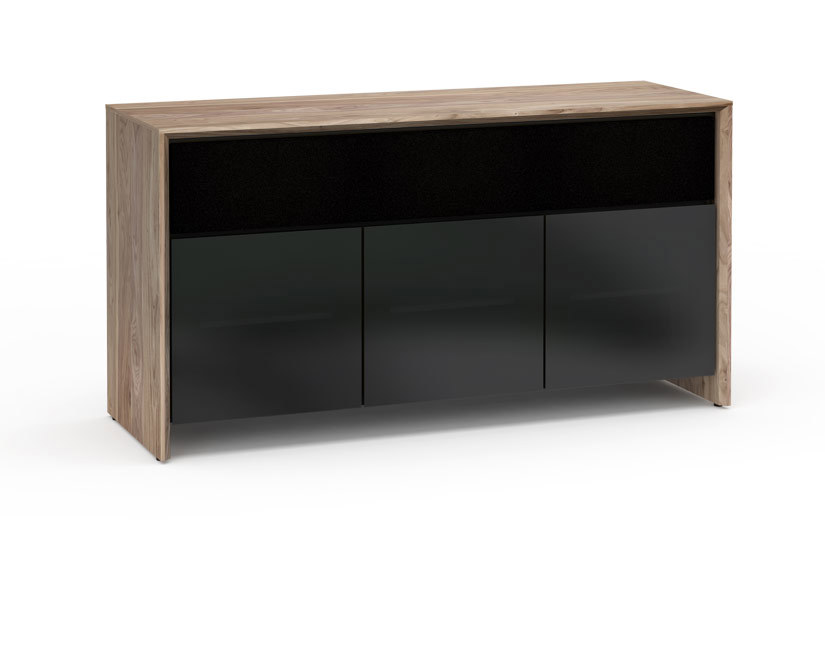 Barcelona 339, Triple-Width AV Cabinet, Natural Walnut with Black Glass Doors