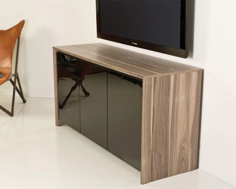 Available in Natural Walnut finish with Smoked Glass Doors or Gloss White doors