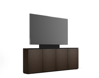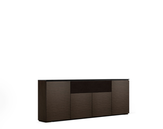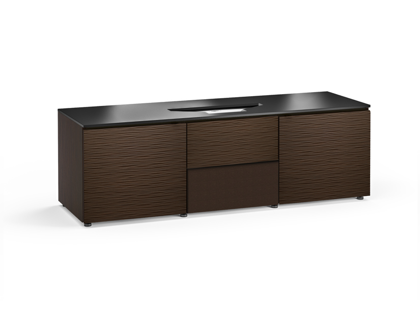 Textured wenge doors with black, tempered glass top and wenge finished side panels