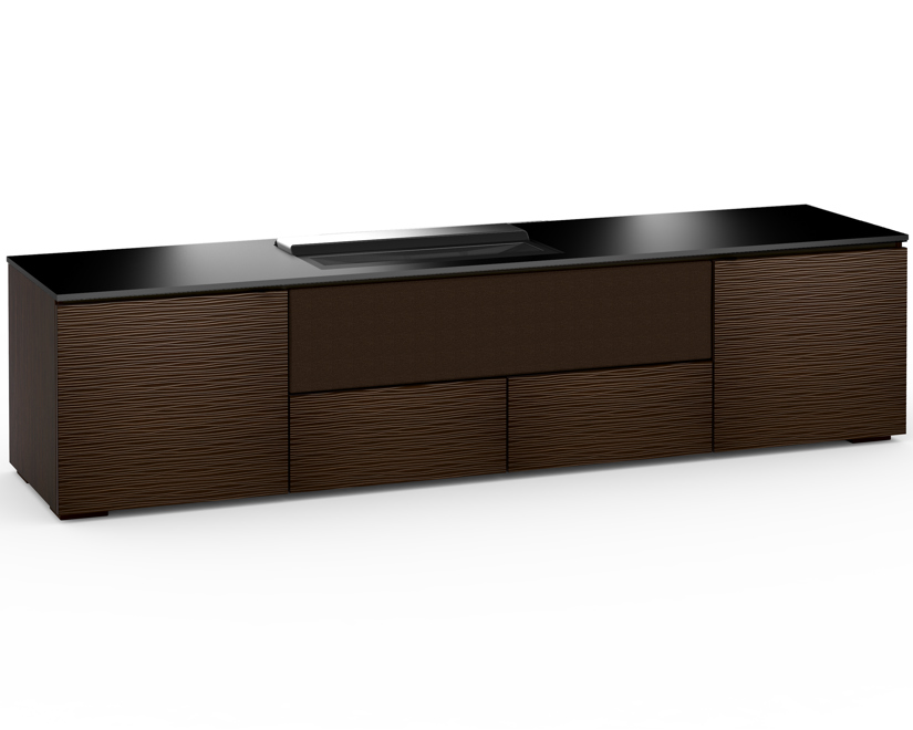 Textured wenge doors with black, tempered glass top and wenge finished side panels