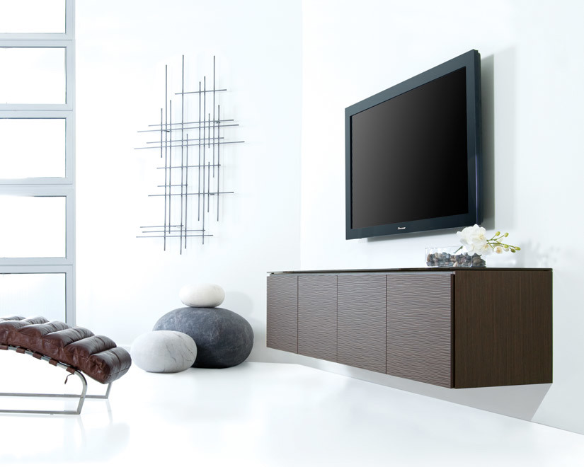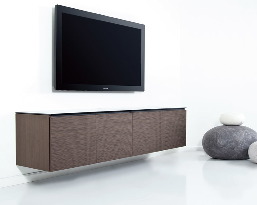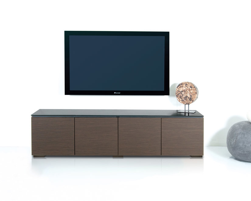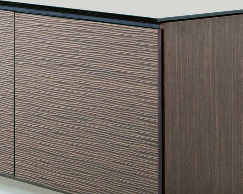 Textured wenge doors with black, tempered glass top and wenge finished side panels