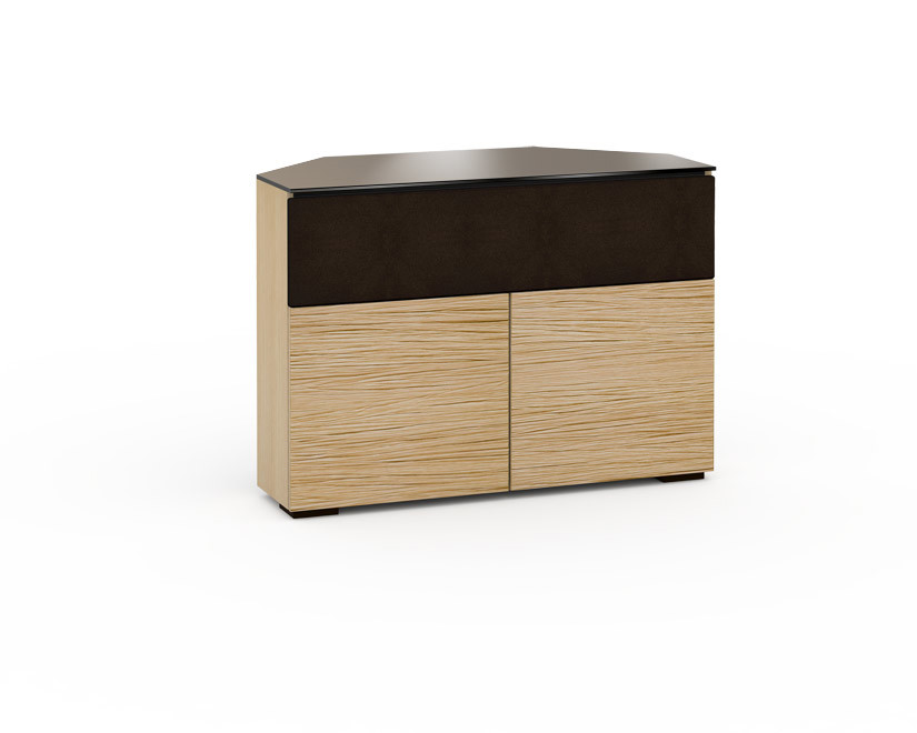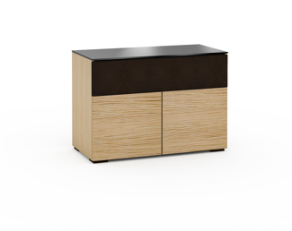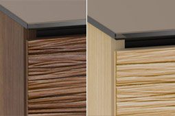 Deep textured, medium walnut or natural oak doors with tempered glass top and matching smooth side panels