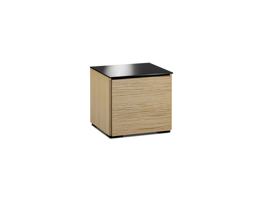 • Cabinet's center segment features an opening with a removable grille designed to hide a speaker