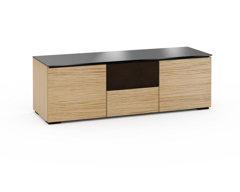 • Cabinet's center segment features an opening with a removable grille designed to hide a speaker