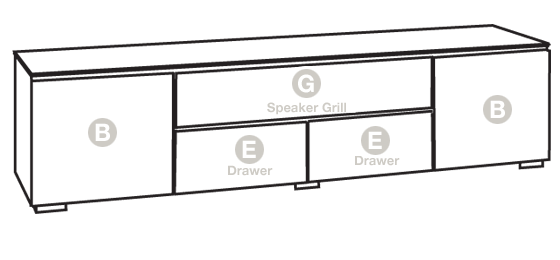 • Two drawers are positioned below the speaker opening