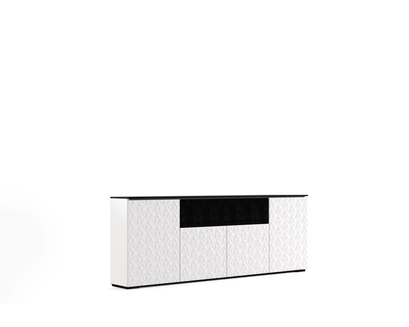 Finished in white, Milan is a sleek door design with a modern geometric three-dimensional, diamond pattern with solid surface, black top.