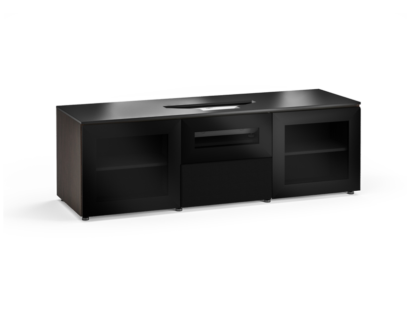Black Oak end-panels, smoked glass doors with black, tempered glass top