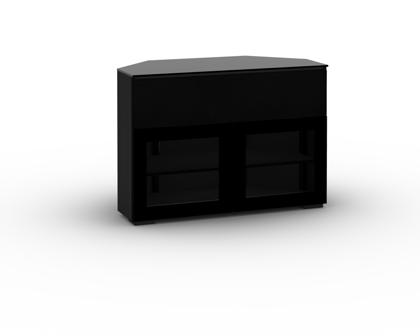 Black Oak end-panels, smoked glass doors with black, tempered glass top