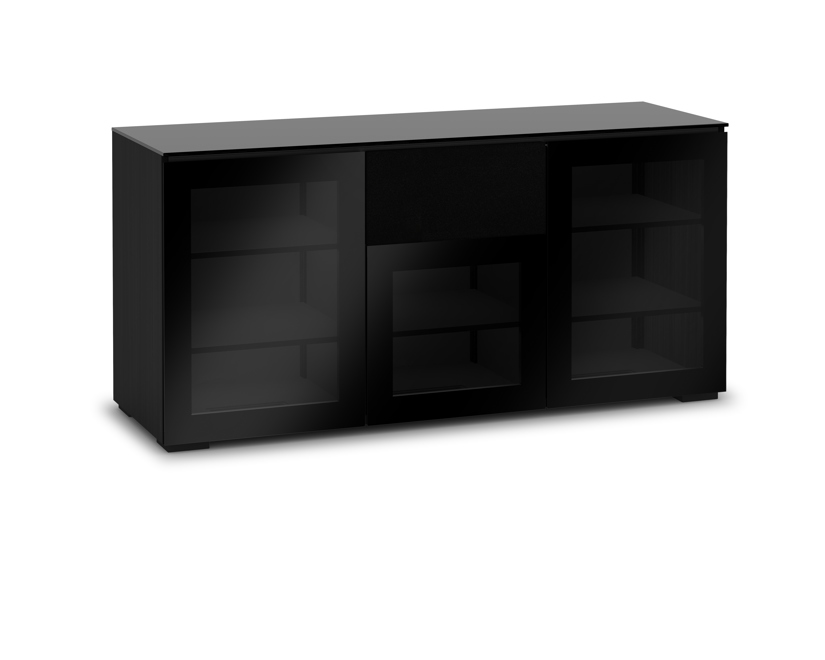 Black Oak end-panels, smoked glass doors with black, tempered glass top