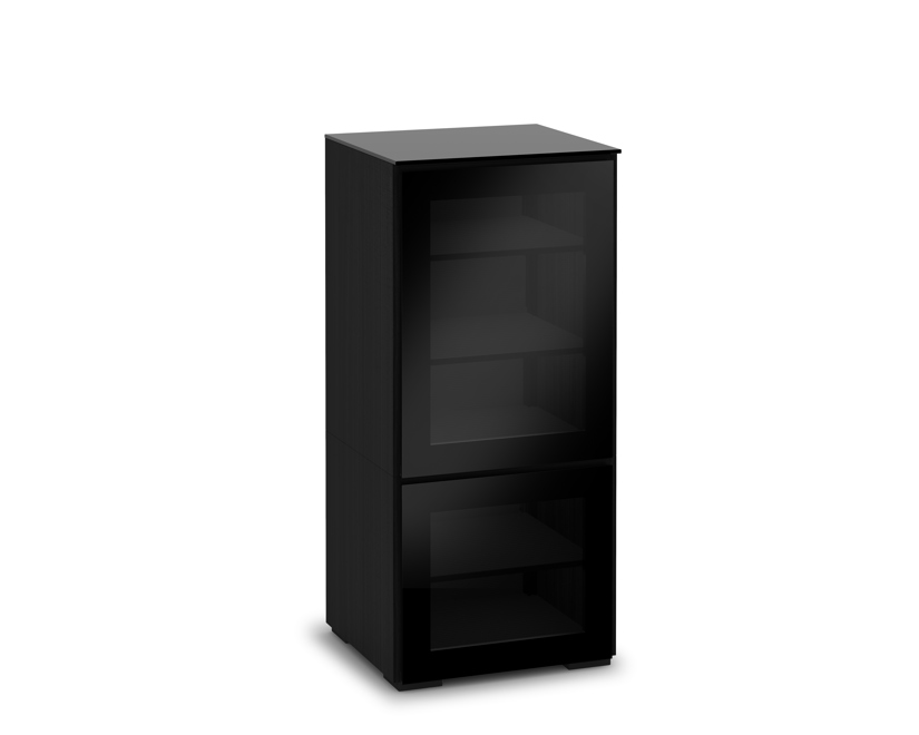 Black Oak end-panels, smoked glass doors with black, tempered glass top