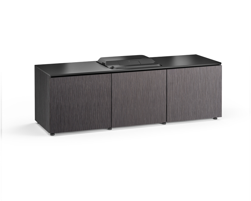 The light look and feel of tall grasses is finely set in a vertical textured pattern. Alpi gray oak with black glass top and black feet work in unison, creating the cabinet’s hi-tech facade.