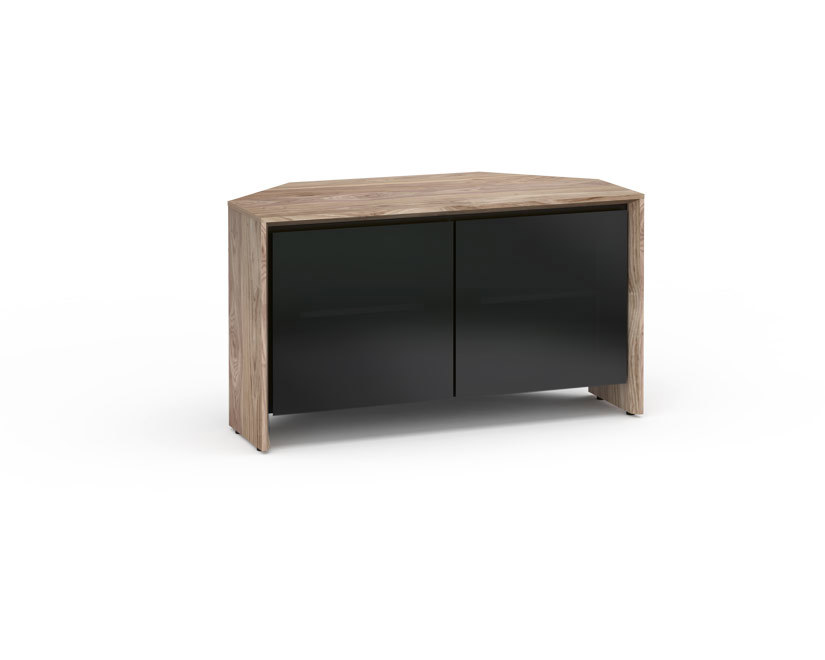 Barcelona 221, Twin-Width Corner Cabinet, Natural Walnut with Black Glass Doors