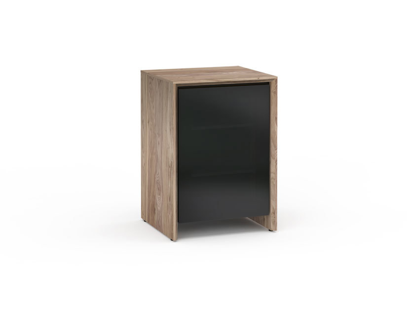 Barcelona 317, Single-Width Audio Cabinet, Natural Walnut with Black Glass Doors