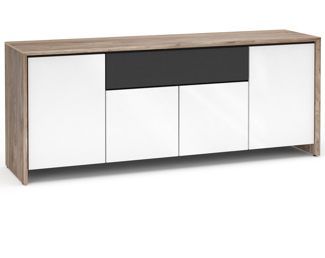 Available in Natural Walnut finish with Smoked Glass Doors or Gloss White doors