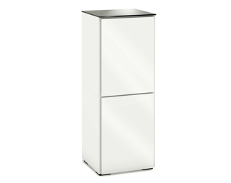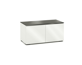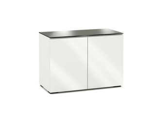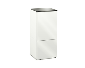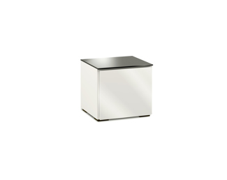 High-gloss, warm white side panels and doors beautifully offset the glass top. This contemporary style truly captures the cosmopolitan vibe of trendsetting Miami.