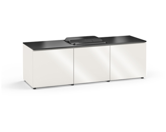 The C-frame is a unique aluminum chassis designed to provide a strong and flexible furniture platform. Our expertly finished furniture panels are attached to the aluminum structure to create cabinets in various styles. While the end appearance is similar to that of typical furniture, the internal chassis permits a wide variety of bolt-on options and accessories.