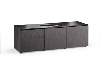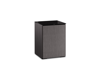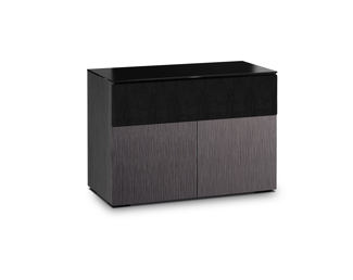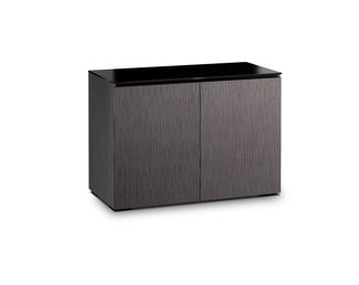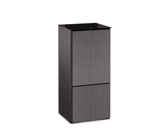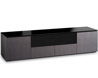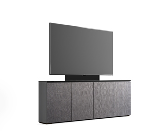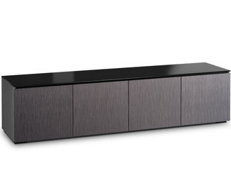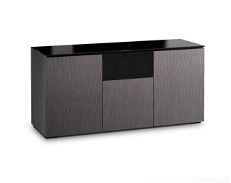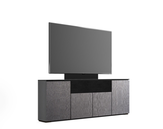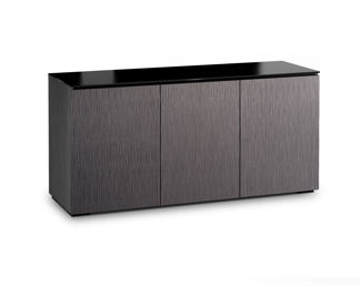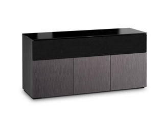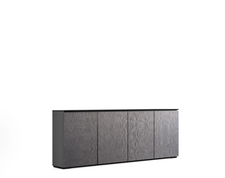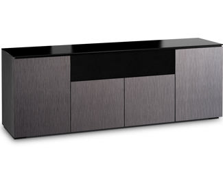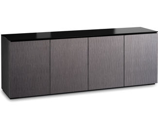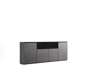 The light look and feel of tall grasses is finely set in a vertical textured pattern. Alpi gray oak with black glass top and black feet work in unison, creating the cabinet’s hi-tech facade.