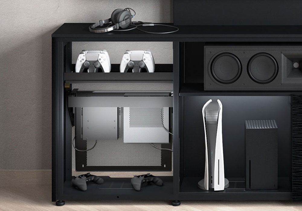 Step up your game – and gaming setup with this cabinet that stores consoles and all gear seamlessly.