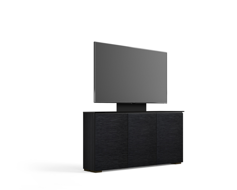 Lightly textured, black oak doors with blackĀ solid surface top and black oak finished side panels