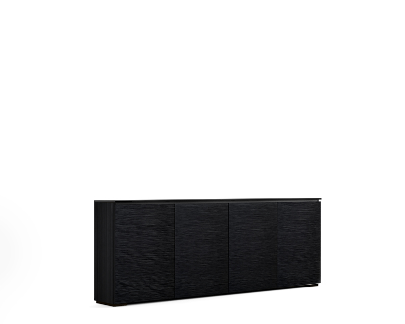 Lightly textured, black oak doors with blackĀ solid surface top and black oak finished side panels