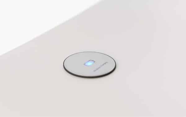 - Flush edge wireless charger with tempered glass surface.