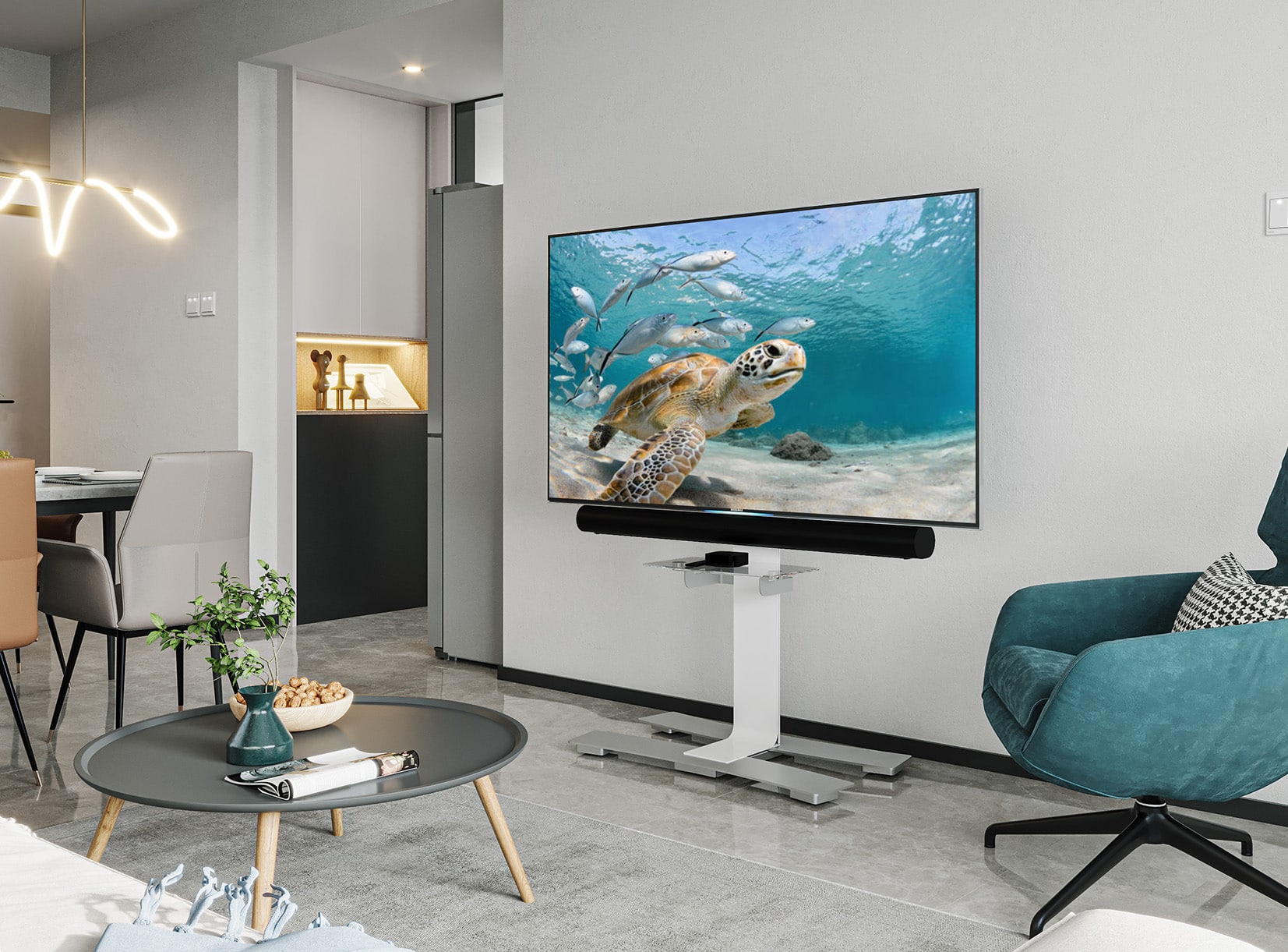 Verbessern Sie Ihr Seherlebnis mit der Acadia Soundbar. Mit diesem Zubehör können Sie Ihre Soundbar entweder über oder unter Ihrem Bildschirm auf dem mobilen Acadia-Ständer befestigen und so eine saubere Integration, starken Halt und flexible Positionierung für moderne Audiosysteme erzielen.