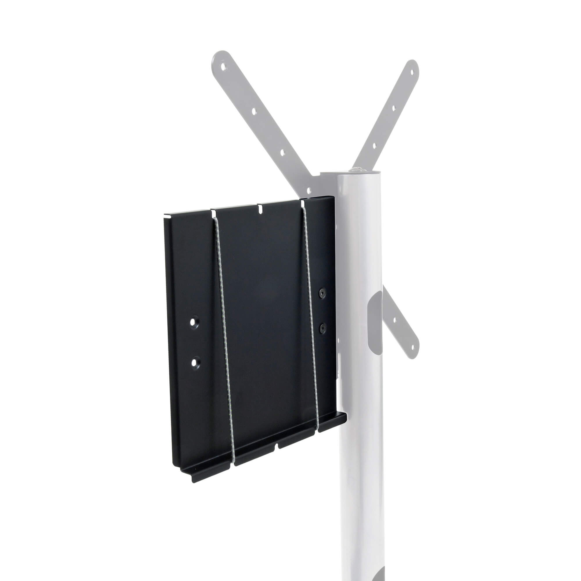 Verbessern Sie Ihre AV-Ausstattung mit dem Box-Up-Peripheriehalter. Diese elegante Stahlhalterung wurde für die Verwendung mit der mobilen Ständerserie Acadia entwickelt und wird an der Rückseite der Display-Säule angebracht. Sie hält einen Mediaplayer, eine Kabelbox, ein Streaming-Gerät oder andere Peripheriegeräte aufrecht und übersichtlich. Die Einheit wurde sowohl für Flexibilität als auch für professionelle Ästhetik entwickelt und kann entweder auf der linken oder rechten Seite der Säule angebracht werden. Mit elastischen Schnüren wird das Gerät sicher gehalten, sodass Unordnung aus dem Blickfeld verschwindet und Ihre Einrichtung aufgeräumt aussieht.