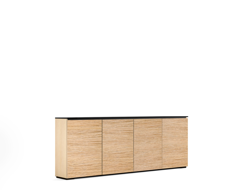 Deep textured, natural oak doors with tempered glass top and matching smooth side panels