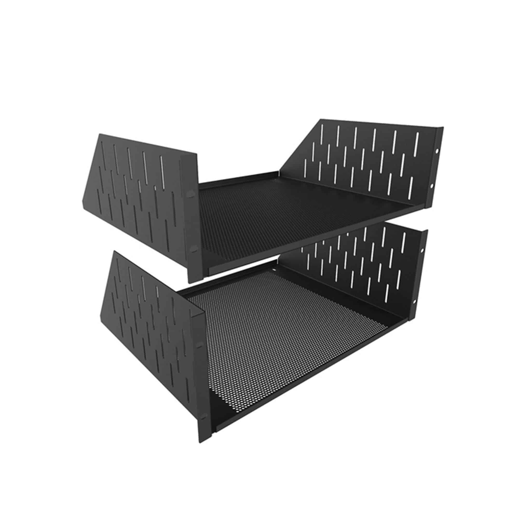 - Construction en acier perforé avec revêtement en poudre noir pour une durabilité accrue, un aspect professionnel et un acheminement efficace des câbles.