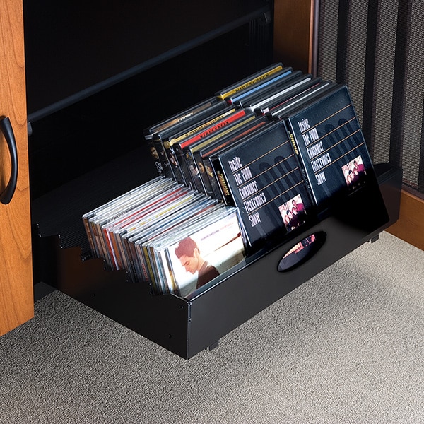 - Compartiments pour ranger une sélection de DVD (75) et/ou de CD (111) à la verticale
