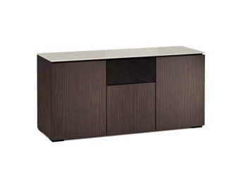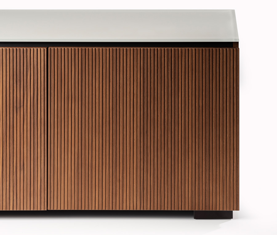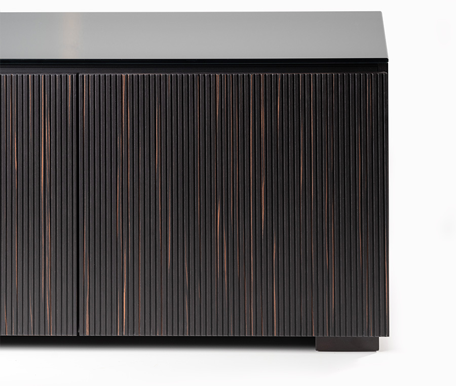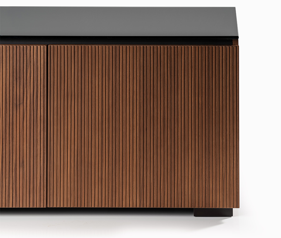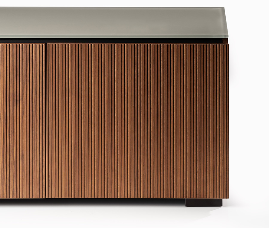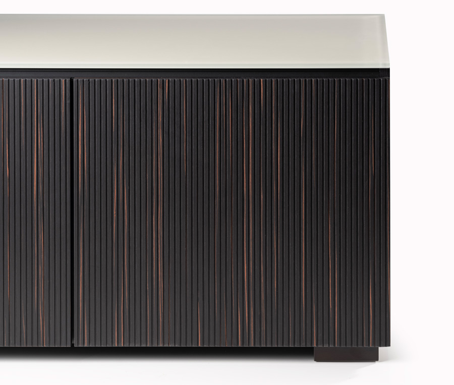 Complementing the fine finishes are two distinctive top options. The Black Glass Top provides a sleek, reflective surface that delivers a clean, modern aesthetic. The Taupe Etched Glass Top brings a soft, matte finish that offers a warm, non-reflective surface—simple yet rich in tone and sophistication.