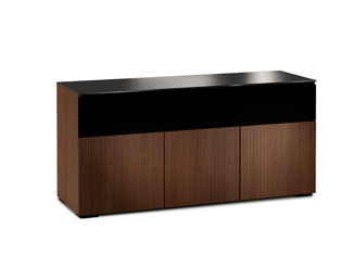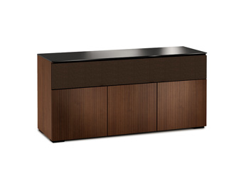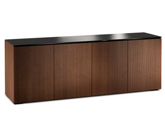Medium Walnut, Vertical Stripe Texture with Black, Glass Top