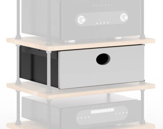 Solid shelves deliver the strength and timeless beauty of genuine, American hardwoods or Black, MDF (medium density fiberboard). MDF is commonly used in acoustics for its strength, stability and antiresonant characteristics.