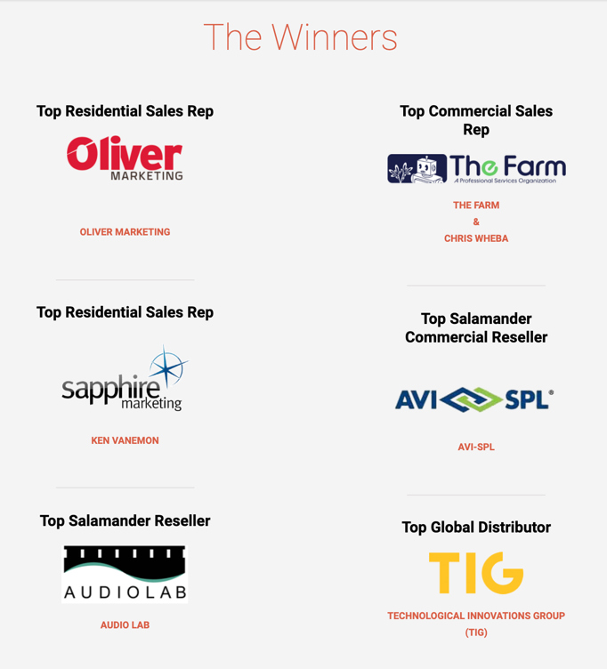 Salamander Designs, the leader in premium quality AV furniture for residential and commercial markets, today announced the winners of the annual 2020 Top Sales Representatives, Resellers and Global Distributor Awards. Despite the extremely challenging sales environment in 2020, members of this elite group were able to overcome difficulties and adapt to achieve great success.