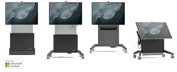 Electric, fixed and adjustable height award-winning FPS series stands can accommodate Microsoft Surface Hub 2S
