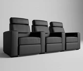 Designed to fit almost any décor, AV Basics home theater seating, the TC3 is upholstered in black bonded leather. Durable, easy to care for material makes this seating ideal for everyday use and is an excellent choice for families with pets. Popular seating configurations including straight and curved rows are available.