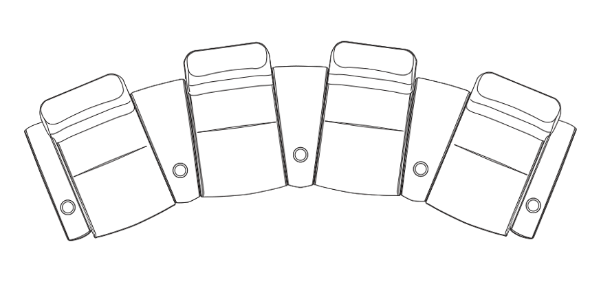 End chairs combine with chair connectors or armless chairs for straight or wedge shaped rows. Two armless Matteo modules can be joined without arm connectors.