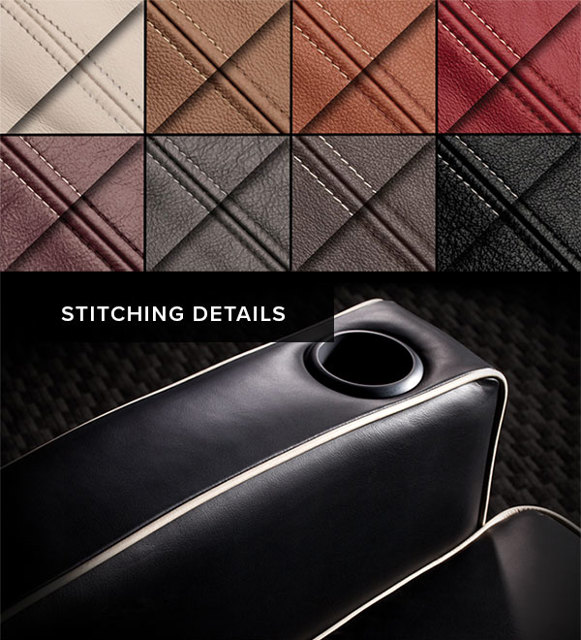 CONTRASTING STITCHING accentuates the fine detail on your custom handmade seating.